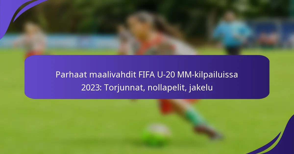 Keskeiset suoritusmittarit maalivahdeille FIFA U-20 -maailmancupissa 2023 sisältävät torjuntojen määrän, saavutetut nollapelit ja jakelun tehokkuuden. Nämä mittarit eivät ainoastaan heijasta yksilöllistä suorituskykyä, vaan myös korostavat maalivahdin vaikutusta joukkueensa menestykseen turnauksessa.