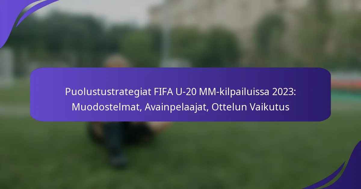 FIFA U-20 -maailmancup 2023 korostaa puolustusstrategioiden tärkeyttä, kun joukkueet käyttävät muodostelmia kuten 4-4-2, 3-5-2 ja 5-3-2 vahvistaakseen puolustustaan. Avainpuolustajat ovat nousseet esiin, osoittaen poikkeuksellisia taitoja, jotka eivät ainoastaan paranna yksilösuorituksia, vaan myös muokkaavat joukkueiden kokonaisstrategioita. Kun nämä muodostelmat ja pelaajaroolit kehittyvät, ne näyttelevät keskeistä roolia otteluiden lopputulosten ja joukkueiden etenemisen määrittämisessä turnauksessa.